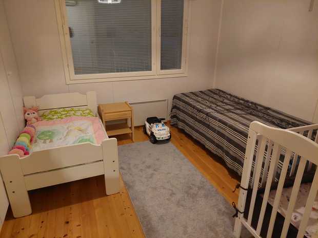 Vuodepaikkojen kuvaus:2 kpl parivuoteita, 1 kpl ilmapatja, 1 kpl Pinnasänky, 1kpl lasten sänky