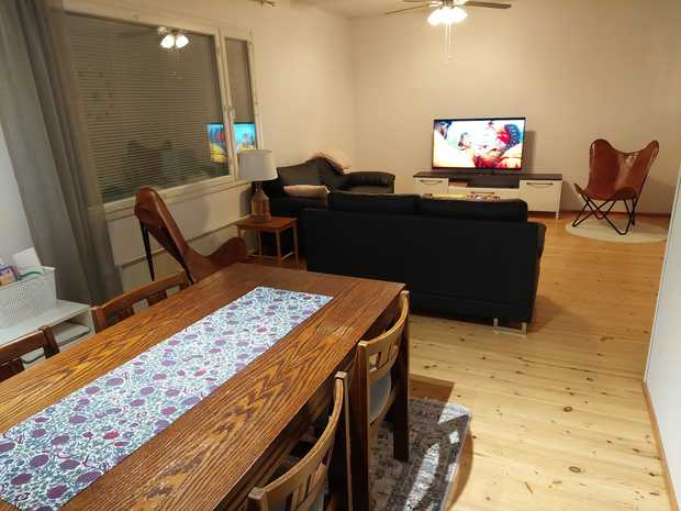 Muita erityishuomioita majoituskohteesta:Ilmalämpöpumppu. Olohuoneeseen on tarvittaessa mahdollista sopia lisävuodepaikoista.