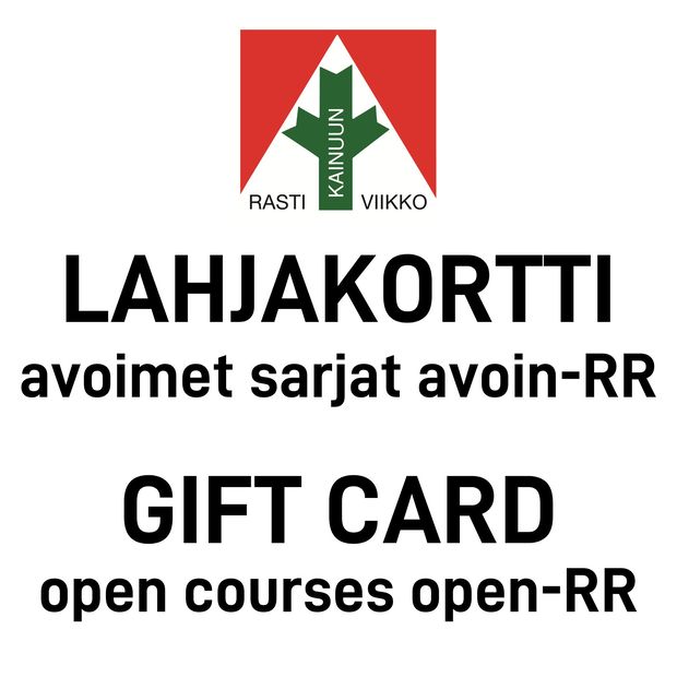 This gift card entitles one (1) Open-RR (family series) categories to participate in the open courses (recreational orientation) of Kainuu Orienteering Week for the whole week. Participation includes four orienteering days during the orienteering week. Participation includes maps for the whole family/group and one emit card.