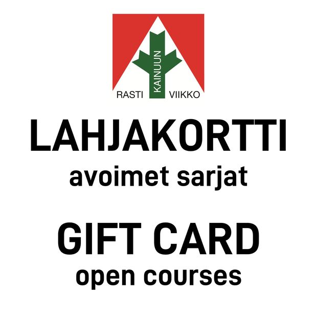 This gift card entitles one (1) person to participate in the open courses (recreational orientation) of Kainuu Orienteering Week for the whole week. Participation includes four orienteering days during the orienteering week. The gift card does not include possible additional services, e.g. emit card rent.
