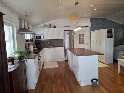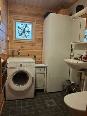 | Varustus: | Astiat 6 hengelle, Sähköliesi uunilla, Takka, Jääkaappi, Pakastin, Mikroaaltouuni, Kahvinkeitin, Leivänpaahdin, Pyykinpesukone, Radio, DVD-soitin, Silitysrauta, Viemäröinti |