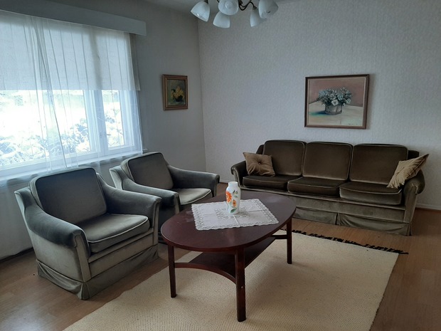 | Kohteen koko: | Alakerran huoneisto 63 m2, 3h+keittiö+wc pesutilat, suihku ja puulämmitteinen sauna kellaritiloissa. |