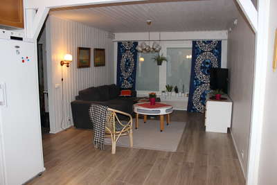 | Varustus: | Astiat 8 hengelle, Sähköliesi uunilla, Jääkaappi, Pakastin, Mikroaaltouuni, Kahvinkeitin, Astianpesukone, Pyykinpesukone, Televisio, Silitysrauta, Viemäröinti, WLAN/WIFI |