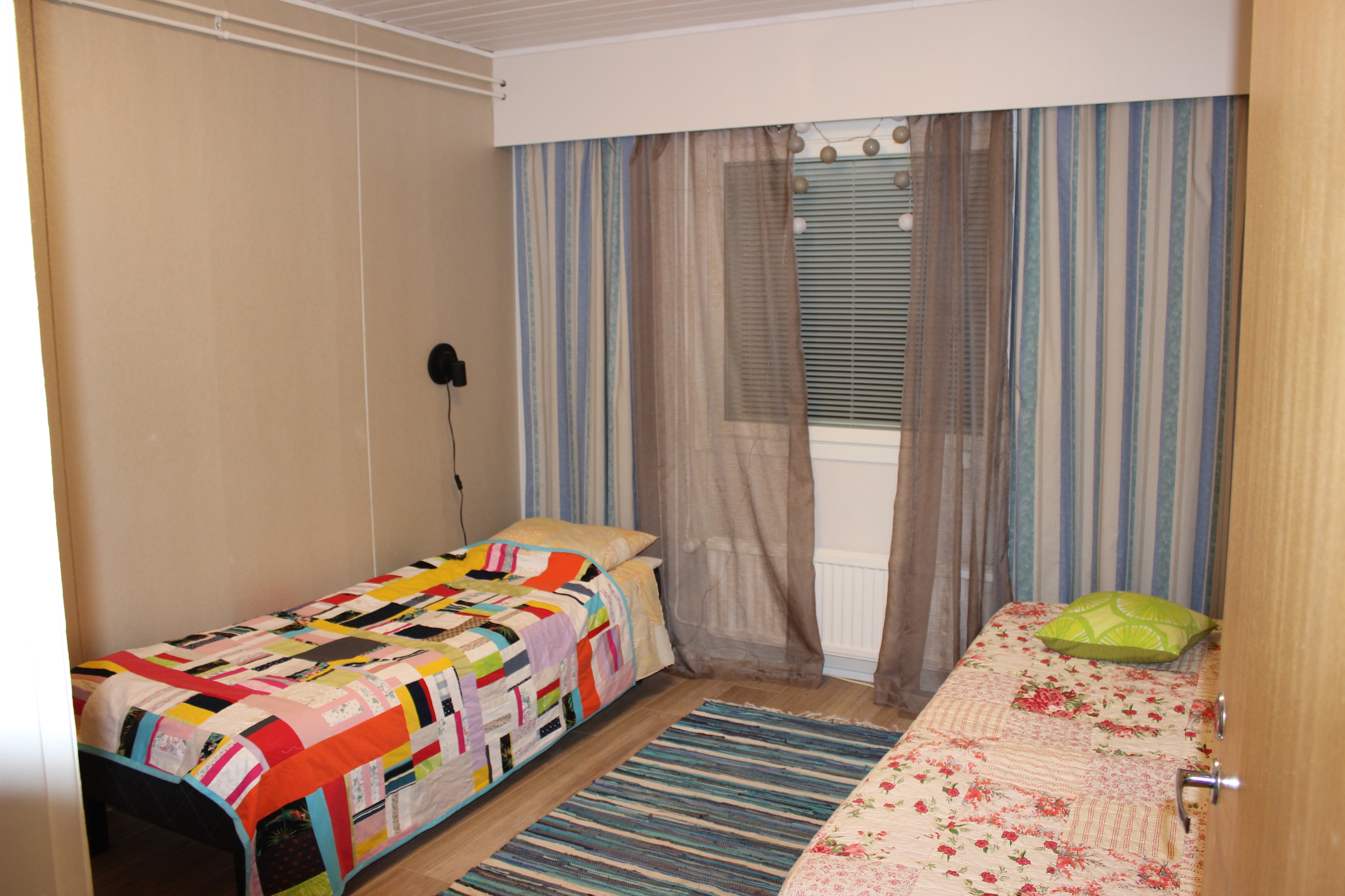 | Vuodepaikkojen kuvaus: | 1 kpl parivuoteita, 4 kpl erillistä vuodetta, 1 kpl vuodesohvia |
