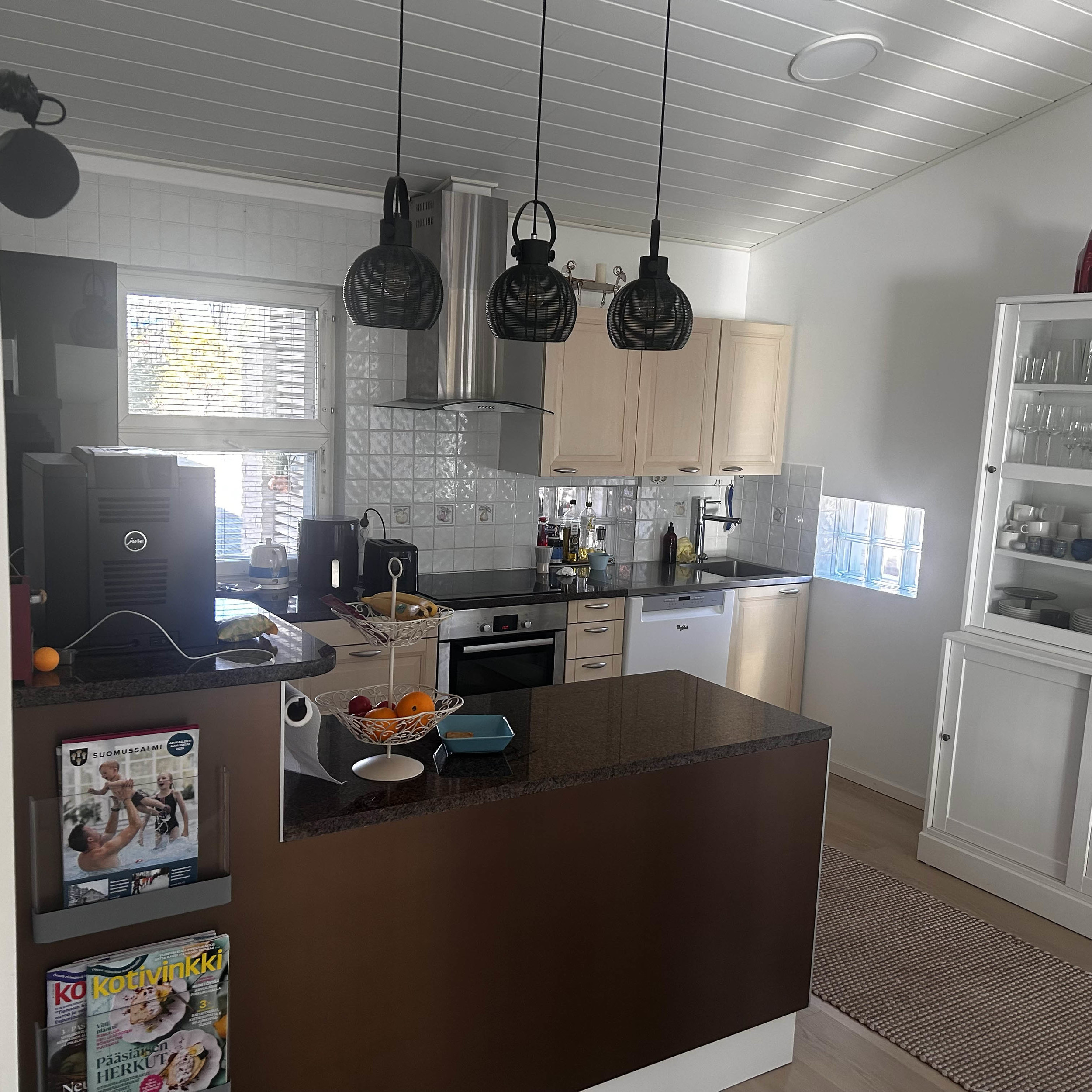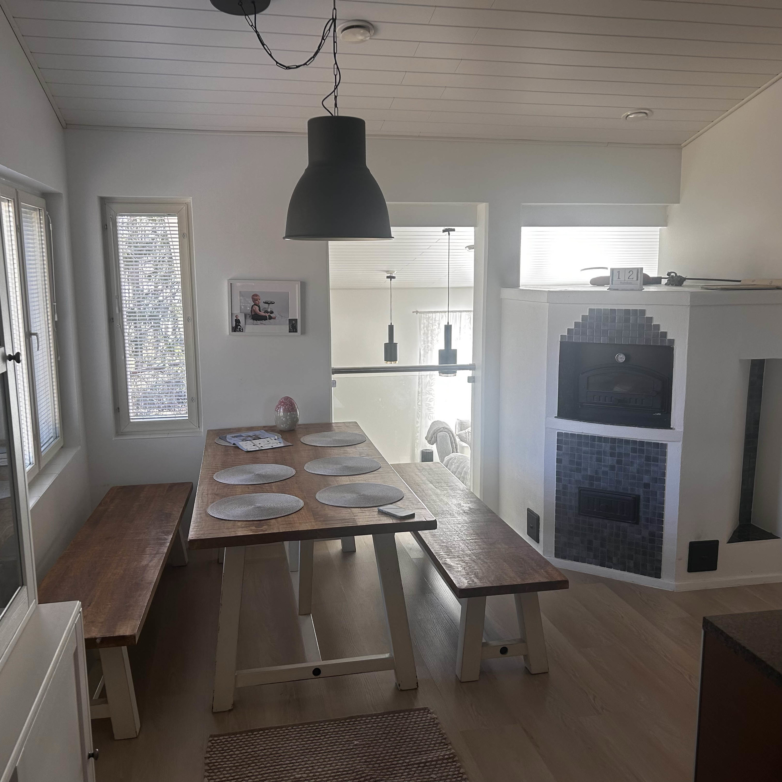 | Varustus: | Astiat 8 hengelle, Sähköliesi uunilla, Takka, Leivinuuni, Jääkaappi, Pakastin, Mikroaaltouuni, Kahvinkeitin, Leivänpaahdin, Astianpesukone, Pyykinpesukone, Radio, Televisio, Silitysrauta, Viemäröinti, WLAN/WIFI |