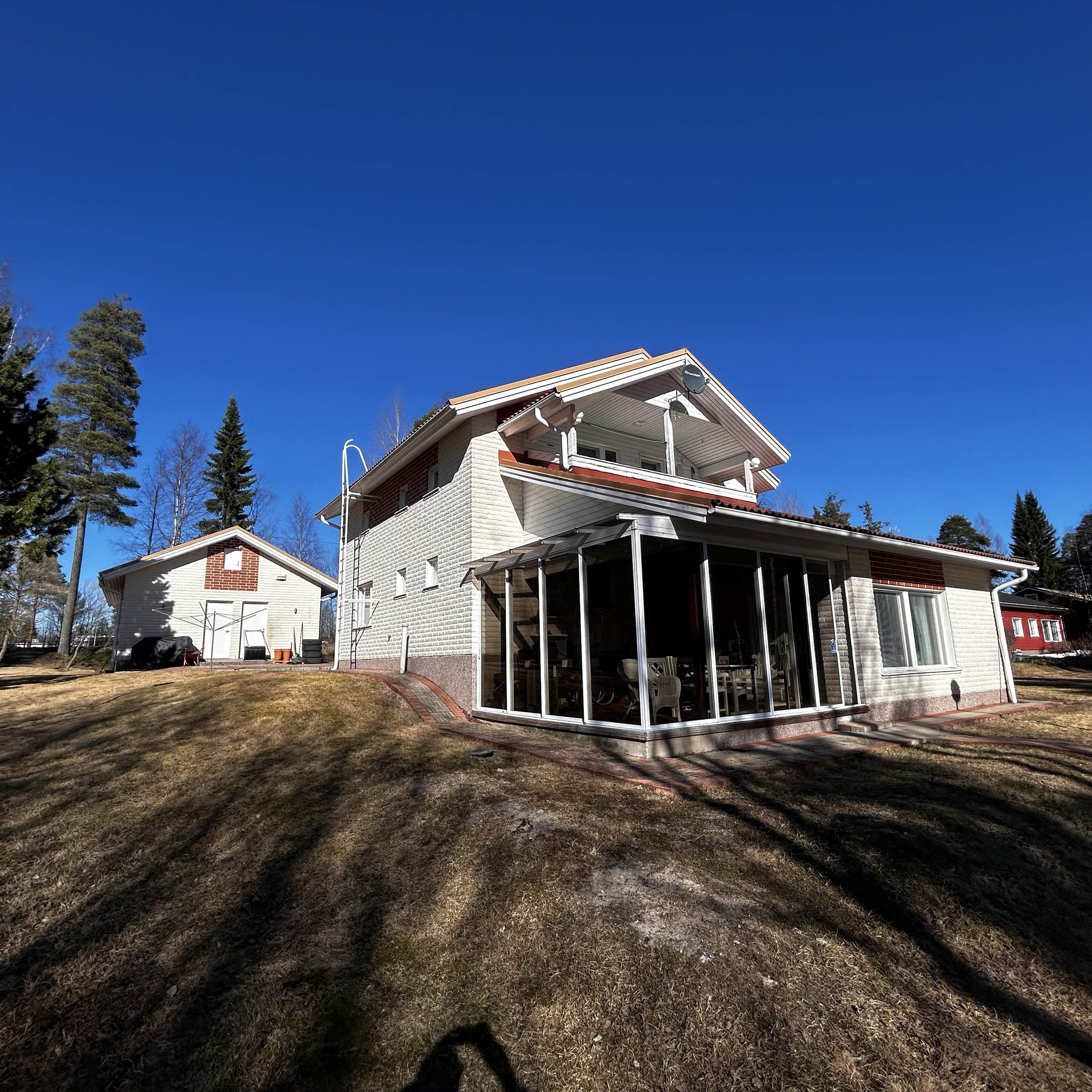 | Tilat: | Keittiö, Olohuone, 4 kpl Makuuhuone, Kuisti, Parveke, Sisä-wc, Sisäsauna |